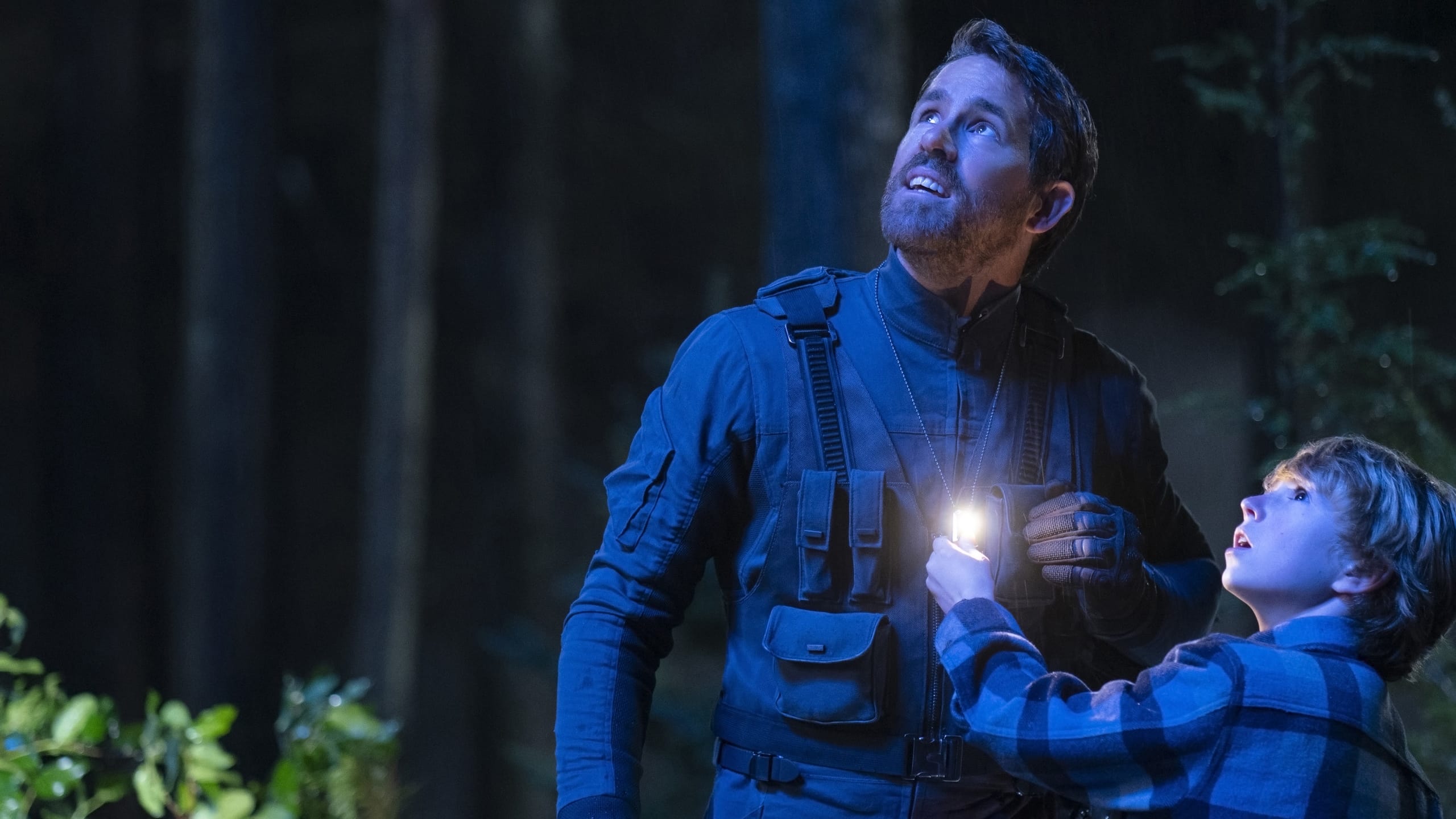 Aufgeregt eilt Adam zum Wrack im Wald und findet einen verletzten Piloten (Ryan Reynolds) vor. Wie sich herausstellt, trägt dieser ebenfalls den Namen Adam. Zufall? Definitiv nicht! Dieser Adam kommt aus der Zukunft und ist die ältere Version des Jungen, den wir soeben kennengelernt haben. Doch es bleibt keine Zeit für Erklärungen, denn bewaffnete Verfolgende heften sich an ihre Fersen.